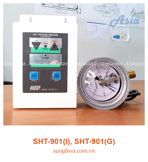 - Đồng hồ đo áp suất SHT-901(G): Đây là dòng đồng hồ đo áp suất cao cấp, được sản xuất theo công nghệ hiện đại, đạt Tiêu chuẩn phòng nổ: EX d II B T6. SHT-901(G) được lắp đặt trực tiếp trên đường ống gas (Mức báo động Cao/ Thấp có thể tùy chỉnh).